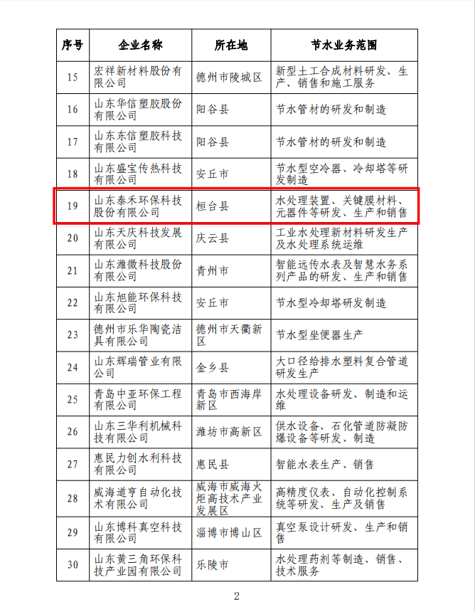 祝賀山東泰禾環保科技股份有限公司,憑借水處理裝置、關鍵膜材料、