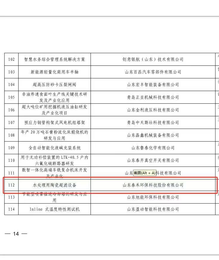 祝賀公司產品“水處理用陶瓷超濾設備”